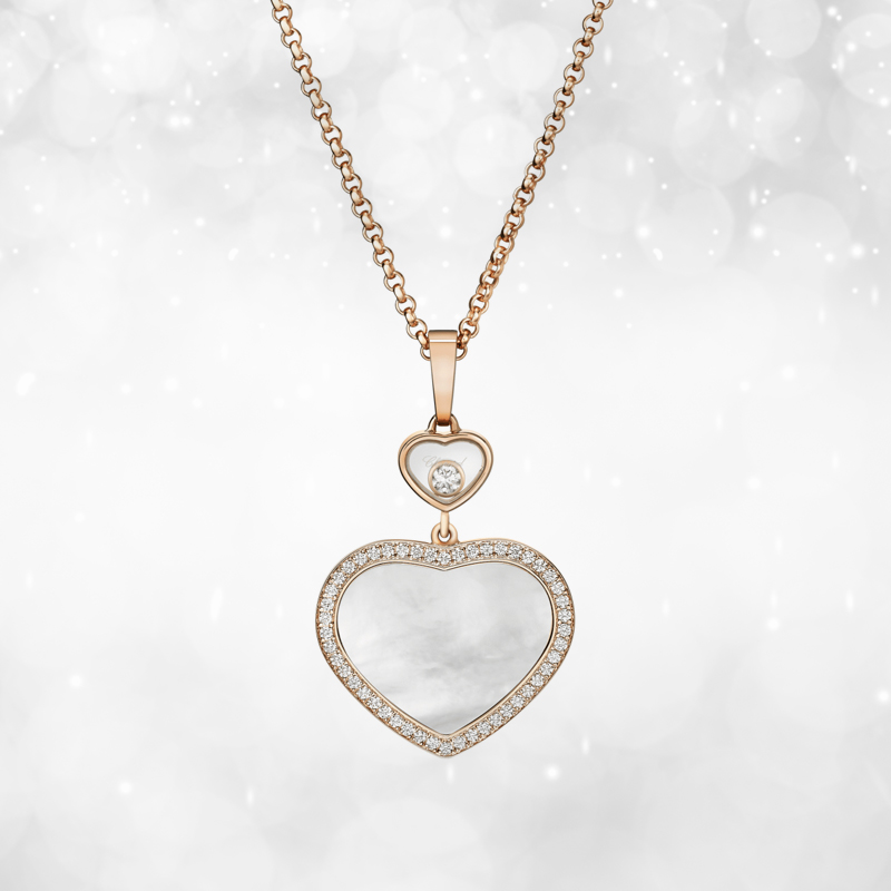Ein gemütliches Zuhause, ein Gläschen Wein, gutes Essen – bei Kerzenschein, so stimmen wir uns auf Weihnachten ein. Denn es sind die kleinen Dinge, wie Zeit mit der Familie genießen, die uns zeigen, was wirklich wichtig im Leben ist. Auch kleine Diamanten können Großes bewirken: Der Happy Hearts-Anhänger aus ethischem Roségold, Diamanten und Perlmutt von Chopard lässt seine Diamanten nicht nur funkeln, sondern auch tanzen. Dieses Happy Hearts-Schmuckstück ist die perfekte Verbindung zwischen dem Talismanherz und den ikonischen tanzenden Diamanten von Chopard. Sie vereint alle großherzigen Frauen der Welt, nicht nur zu Weihnachten.