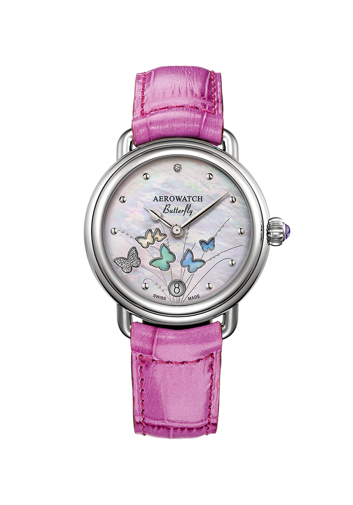 | Zifferblatt | rosa Perlmutt, Schmetterling Muster |