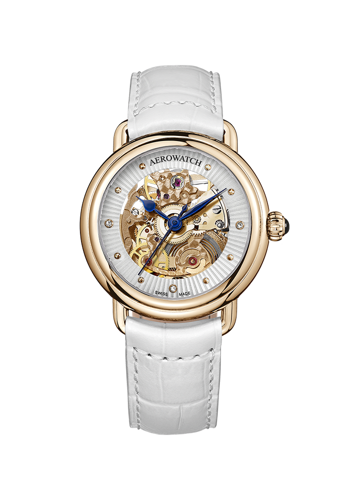 Die familiengeführte Uhrenmarke Aerowatch führt die Schweizer Uhrmacherkunst konsequent weiter. Ob Aerowatch Skeleton oder Aerowatch Renaissance Uhrenmodelle – die Kreativität der Uhrenmarke ist gross. Besonders herausragend war die Idee der Skelettuhren: Sie sind nicht nur faszinierend anzusehen, sondern auch eine handwerkliche Meisterleistung. Geradezu Schmuckstücke für das Handgelenk, genau wie auch die Aerowatch Damenuhren, welche überaus feminin in der Linienführung und Farbwahl sind. Für besondere Anlässe aber auch den Businessalltag passt etwa die Aerowatch Day & Night Kollektion perfekt. Die Heritage Uhren sind klassisch im Aussehen, die römischen Ziffern und das Lederband sorgen mit schlichter Eleganz für absoluten Stil. Doch nicht nur im Uhrendesign sind die Schweizer Automatik- und Quarzuhren herausragend, denn die Uhren weisen auch Funktionen wie Mondphase oder Chronograph auf. In Summe sind Form und Funktion das Zeugnis der hohen Kunst des heutigen Uhrmacherhandwerks von Aerowatch, das Sie bei Bijouterie Bläuer kennenlernen können.