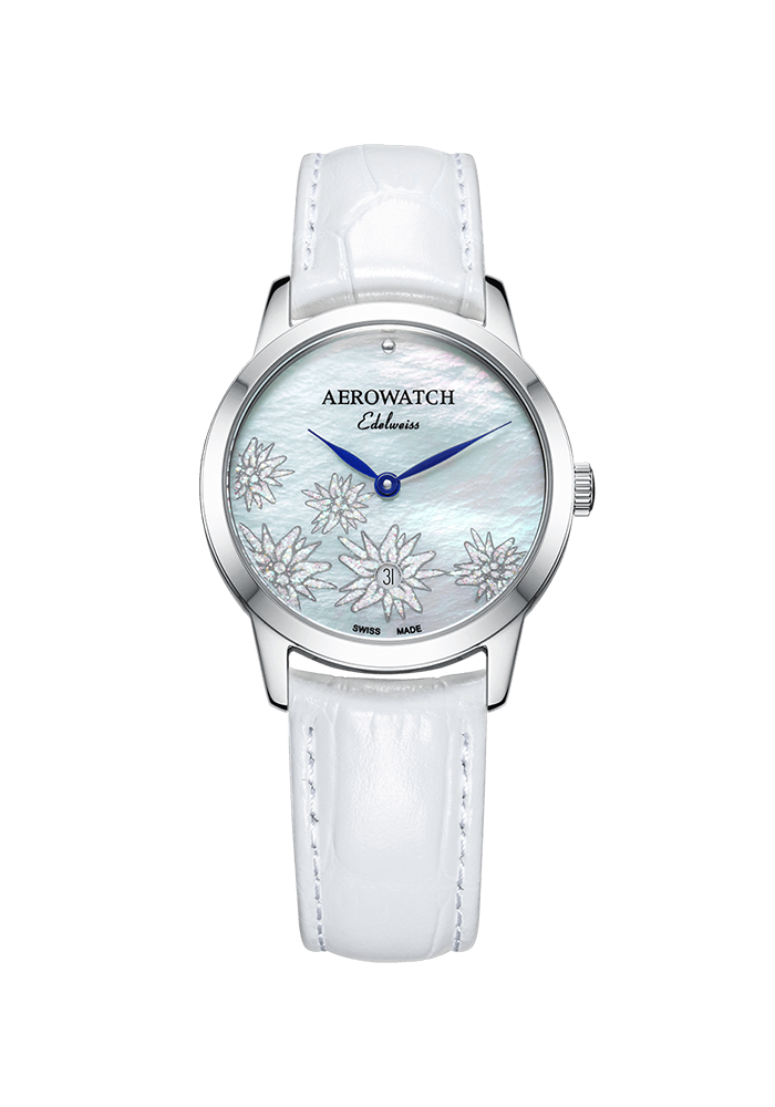 Zifferblattweißes Perlmutt, Edelweiss-Muster