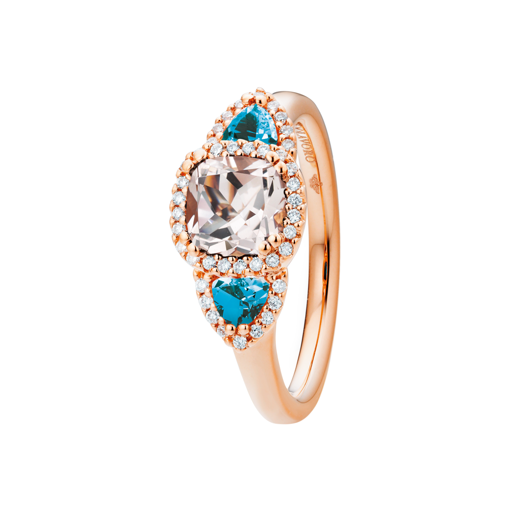 | Farbsteine | Morganit antik 6.0 x 6.0 mm ca. 0.90ct, Topas London blue Trillion 3.5 x 3.5 mm ca. 0.50ct |