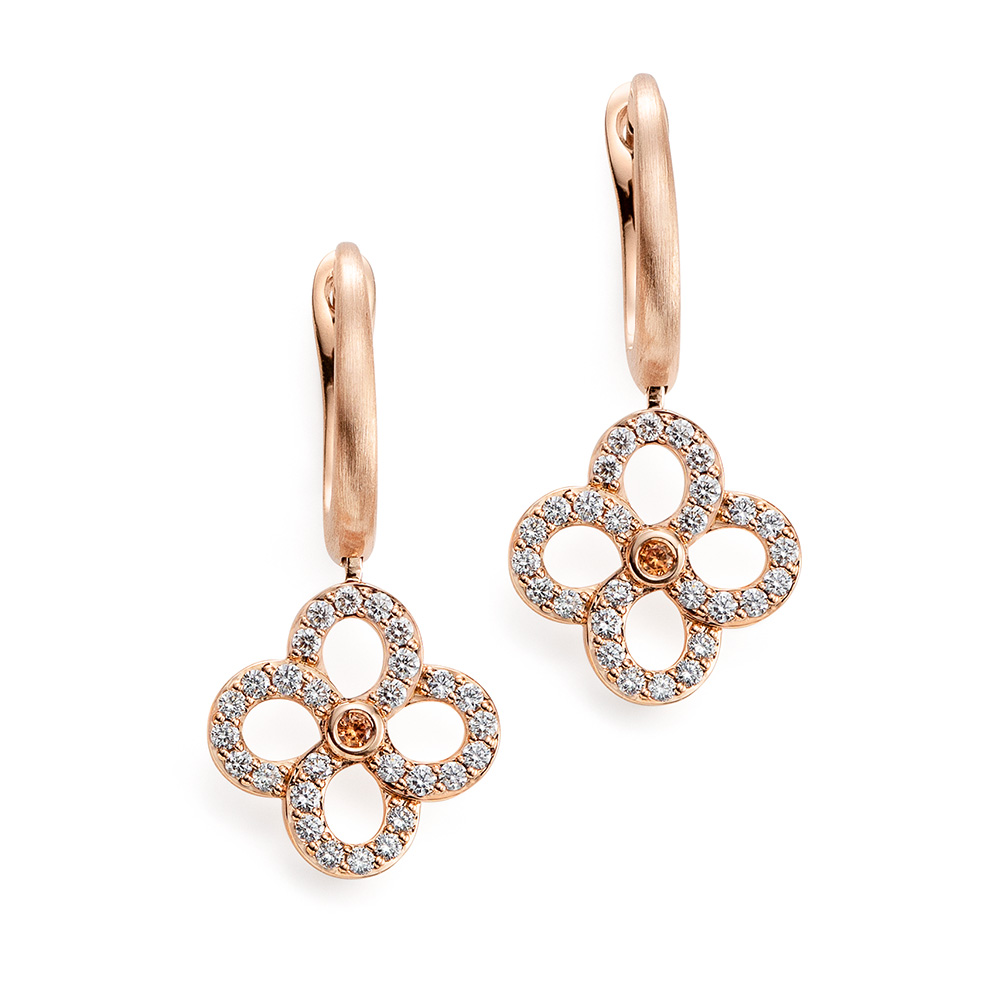 Ohrhänger in Roségold mit 56 Brillanten und 2 Saphire orange