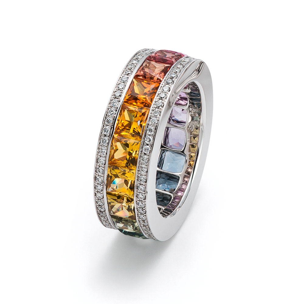 Alliance in Weissgold 750 mit naturfarbenen Saphiren aus Madagaskar und Brillanten
