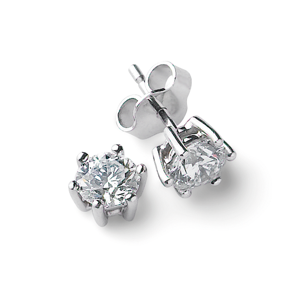 Soltaire-Ohrstecker in Weissgold 750 mit Brillanten in 6-Griff-Fassung