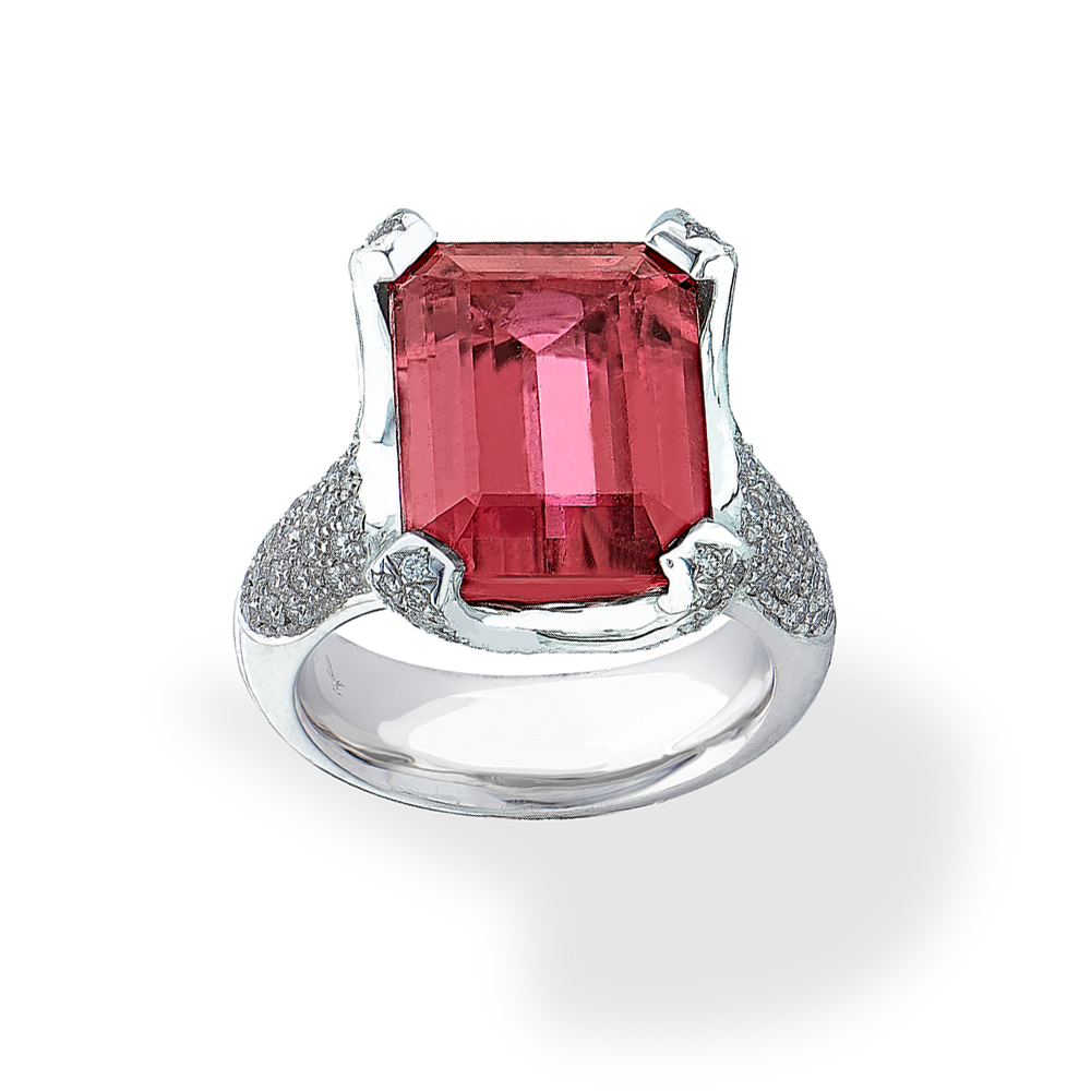 Ring in Weissgold 750 mit Rubellit und Brillanten