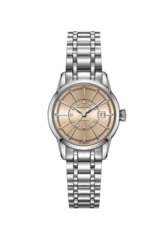 Bereits in über 400 Kinofilmen traten Uhrenmodelle von Hamilton auf. Diese enge Verbundenheit mit dem Hollywood Filmbusiness ist auch in den Uhren der Kollektion American Classics zu sehen: elegante Herrenuhren und glamouröse Hamilton Damenuhren. Die Hamilton Quarzuhren der Serie Broadway zelebrieren die Verbundenheit mit der geradlinigen Architektur von Manhattan. Eine Reminiszenz an die amerikanische Jazzlandschaft ist die Hamilton Jazzmaster Serie. Die Fliegeruhren versammelt Hamilton unter den Kollektionsnamen Hamilton Khaki Field, Hamilton Khaki Aviation und Hamilton Khaki Navy. Während die erste durch robuste Machart und elegantes Design überzeugt, weist Hamilton Khaki Aviation dezidierte Pilotenfunktionen in den Automatikuhren auf und Navy vereint Funktionen für Unterwasseraktivitäten. Die Hamilton Ventura ist bestimmt das ungewöhnlichste aller Modelle, weist es doch ein dreieckiges Gehäuse auf. Das Originalmodell stammt aus dem Jahr 1957, das als erste batteriebetriebene elektrische Uhr in die Geschichte einging. In allen von der amerikanischen Kultur inspirierten Uhrenmodellen von Hamilton tickt Schweizer Präzision. Entdecken Sie die ikonischen Uhren bei Bijouterie Bläuter in Thun!