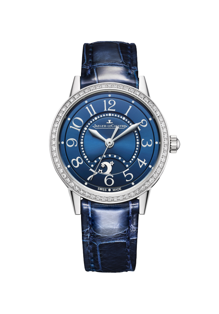 Mit ihrem 29 mm Edelstahlgehäuse, der besetzten Lünette und dem blauen Zifferblatt zeigt die Rendez-Vous Night & Day Small stilvoll und elegant die Zeit an. Die in das Herz des Zifferblatts eingebettete Tag-/Nachtanzeige sorgt für Faszination.