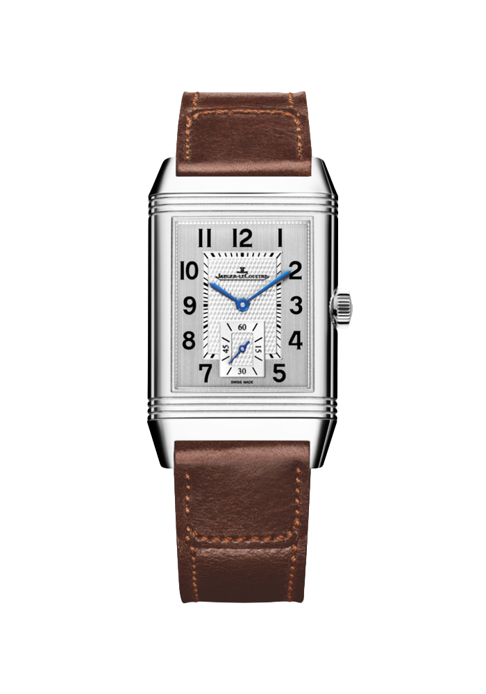 Das Design der Reverso Classic Large Small Second aus Edelstahl ist symbolisch für die Reverso Kollektion. Die kleine Sekunde ist eine Miniaturausgabe des Zifferblatts, sie spiegelt dessen Details wider und bietet eine zweite Ebene zum Ablesen der Zeit. Abgerundet wird sie durch ein Armband aus Kalbsleder aus der Kollektion der Casa Fagliano.