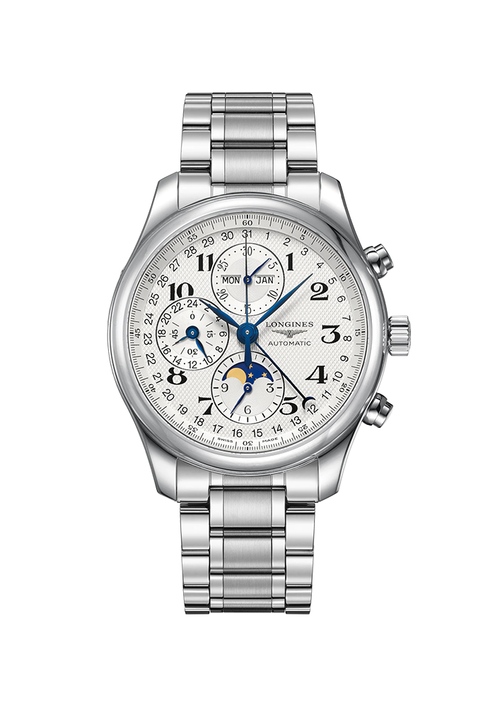 FunktionenMonatsanzeige, Chronograph, Vollkalender, Datum, Wochentag, Kleine Sekunde, Mondphase