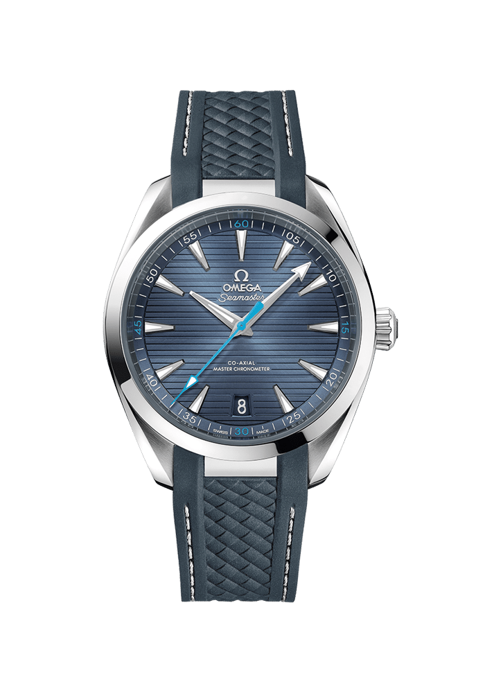 Das graue Armband aus strukturiertem Kautschuk ist mit einer grauen Unterfütterung sowie einem Glied aus Edelstahl versehen, das es mit dem Gehäuse verbindet. Der Zeitmesser wird von dem OMEGA Master Chronometer Kaliber 8900 angetrieben, das vom Eidgenössischen Institut für Metrologie (METAS) zertifiziert wurde und höchsten Branchenstandards entspricht.