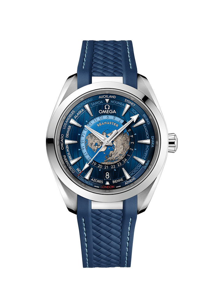 Aqua Terra 150M OMEGA Co‑Axial Master Chronometer GMT Worldtimer 43 mm