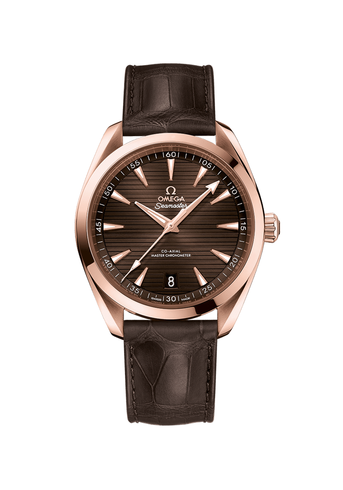 Der Zeitmesser wird von einem braunen Lederarmband am Handgelenk gehalten und von dem OMEGA Master Chronometer Kaliber 8901 angetrieben, das vom Eidgenössischen Institut für Metrologie (METAS) zertifiziert wurde und höchsten Branchenstandards entspricht.