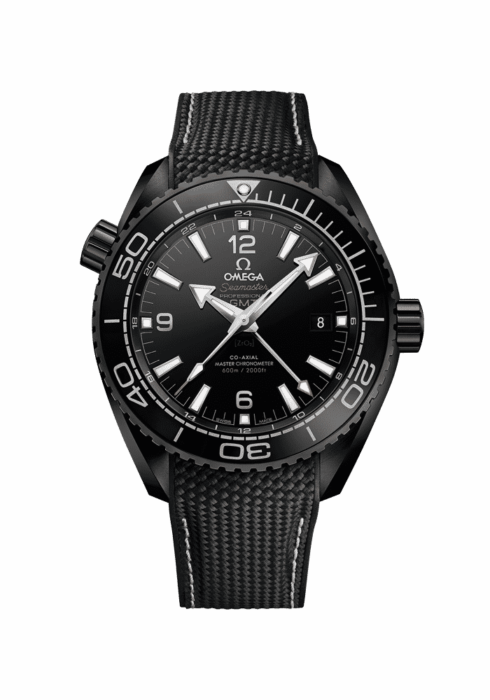 Durch die Erkundung der dunklen Seite des Meeres baute OMEGA seine Kompetenzen im Umgang mit Keramik kontinuierlich aus und präsentiert heute die Seamaster Planet Ocean „Deep Black“. Dieser bemerkenswerte 45,5 mm große Zeitmesser ist die Kombination eines GMT-Modells und einer Taucheruhr. Seine komplett schwarze Farbe verweist auf das Meer in einer Tiefe von 300 Metern. Das glänzende und gebürstete Gehäuse wurde aus einem einzigen Stück Keramik gefertigt, dem gleichen Material, das auch für die einseitig drehbare Lünette und das Zifferblatt mit arabischen Ziffern verwendet wurde.