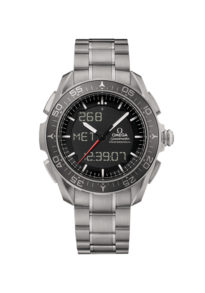 OMEGAs Pioniergeist ermöglichte uns Reisen ins Weltall und in die Tiefen des Ozeans. Ihren Sinn für Abenteuer und Entdeckung unterstreicht die Marke heute mit der Lancierung der Speedmaster Skywalker X-33 aufs Neue. Dieser 45 mm große, aus Titan Grade 2 gefertigte Zeitmesser verfügt über einen schwarzen Keramiklünettenring, ein schwarzes Zifferblatt mit LCD-Display und ein Armband aus Titan Grade 2 und 5. Er ist mit OMEGAs Kaliber 5619, einem multifunktionalen Quarzchronographenwerk, ausgestattet.