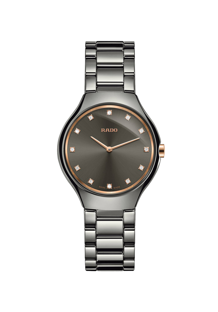 Die True Thinline könnte als der ultimative Rado Zeitmesser betrachtet werden. Die schlanken Quarzuhren fanden 2011 erstmals Eingang in die Kollektion. Sie sind nicht nur die flachsten Zeitmesser von Rado, sondern waren auch die ersten Modelle, die über das bahnbrechende Monobloc-Gehäuse aus Hightech-Keramik verfügen. Leicht, kratzfest und komfortabel zu tragen – und jetzt auch noch um den Reiz der Diamanten ergänzt – überdauern diese Modelle garantiert die Zeit.