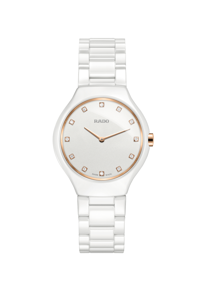 Die True Thinline könnte als der ultimative Rado Zeitmesser betrachtet werden. Die schlanken Quarzuhren fanden 2011 erstmals Eingang in die Kollektion. Sie sind nicht nur die flachsten Zeitmesser von Rado, sondern waren auch die ersten Modelle, die über das bahnbrechende Monobloc-Gehäuse aus Hightech-Keramik verfügen. Leicht, kratzfest und komfortabel zu tragen – und jetzt auch noch um den Reiz der Diamanten ergänzt – überdauern diese Modelle garantiert die Zeit.