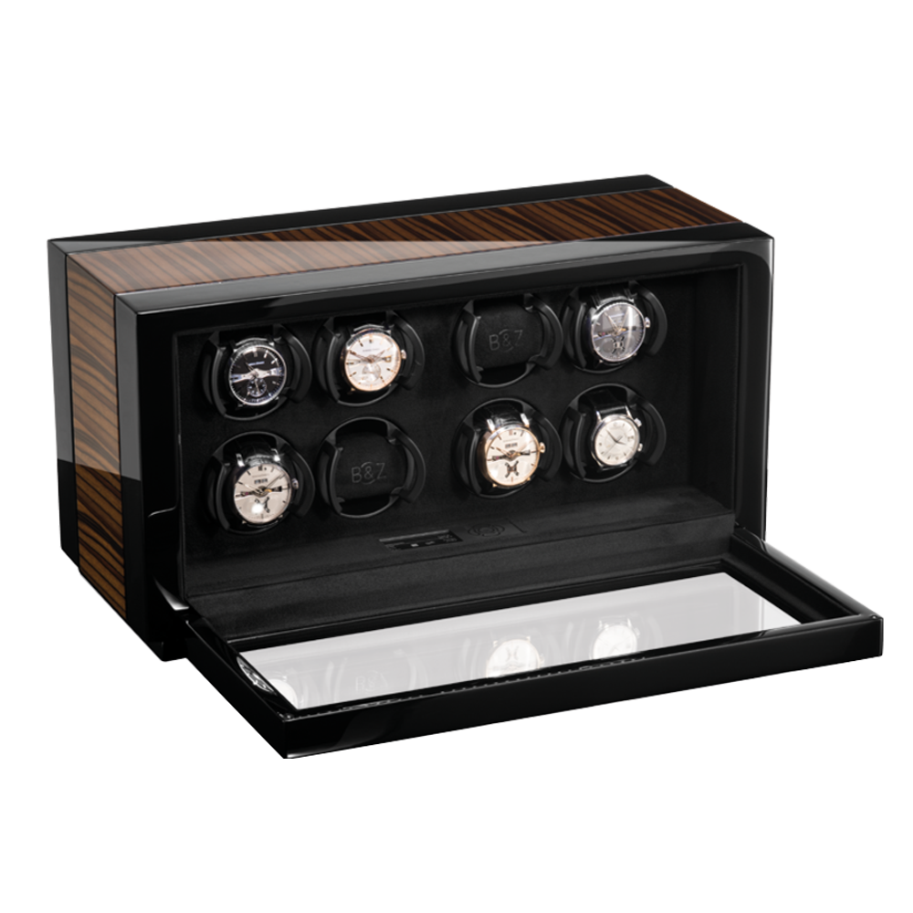 | Material | Handgefertiges Gehäuse mit 10 Schichten Hochglanz-Lack und Makassar- oder Carbon-Einlagen |