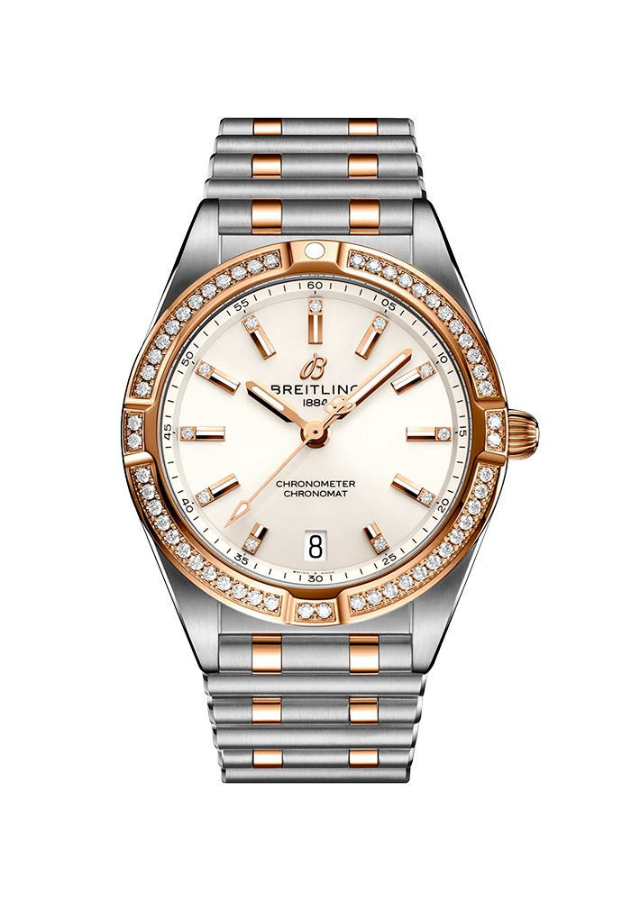 Stylish und doch elegant – die Chronomat 32 mit modernem Retro-Touch ist eine vielseitige, sportlich-schicke Uhr für jeden Anlass. Die breite Palette an Metallgehäusen reicht von coolem Edelstahl über die zweifarbigen Allrounder bis hin zu luxuriösem 18-karätigen Rotgold. Diamantbesetzte Lünetten und Zeiger sowie farbenfrohe Zifferblätter zaubern auf Wunsch ein zusätzliches Funkeln auf den Zeitmesser für Damen. Die Chronomat 32 wird von dem Breitling-Kaliber 77, einem COSC-zertifizierten Chronometer, angetrieben und auf dem legendären, bequemen Rouleaux-Armband mit Doppelfaltschliesse der Marke präsentiert.