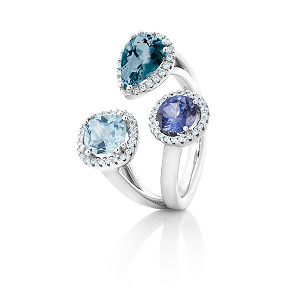 | Farbsteine | Topas London blue facettiert 9x6 mm ca. 1.50ct, Topas sky blue antik 6x6mm ca. 1.10ct, Tansanit facettiert Ø 6mm ca. 0.80ct |