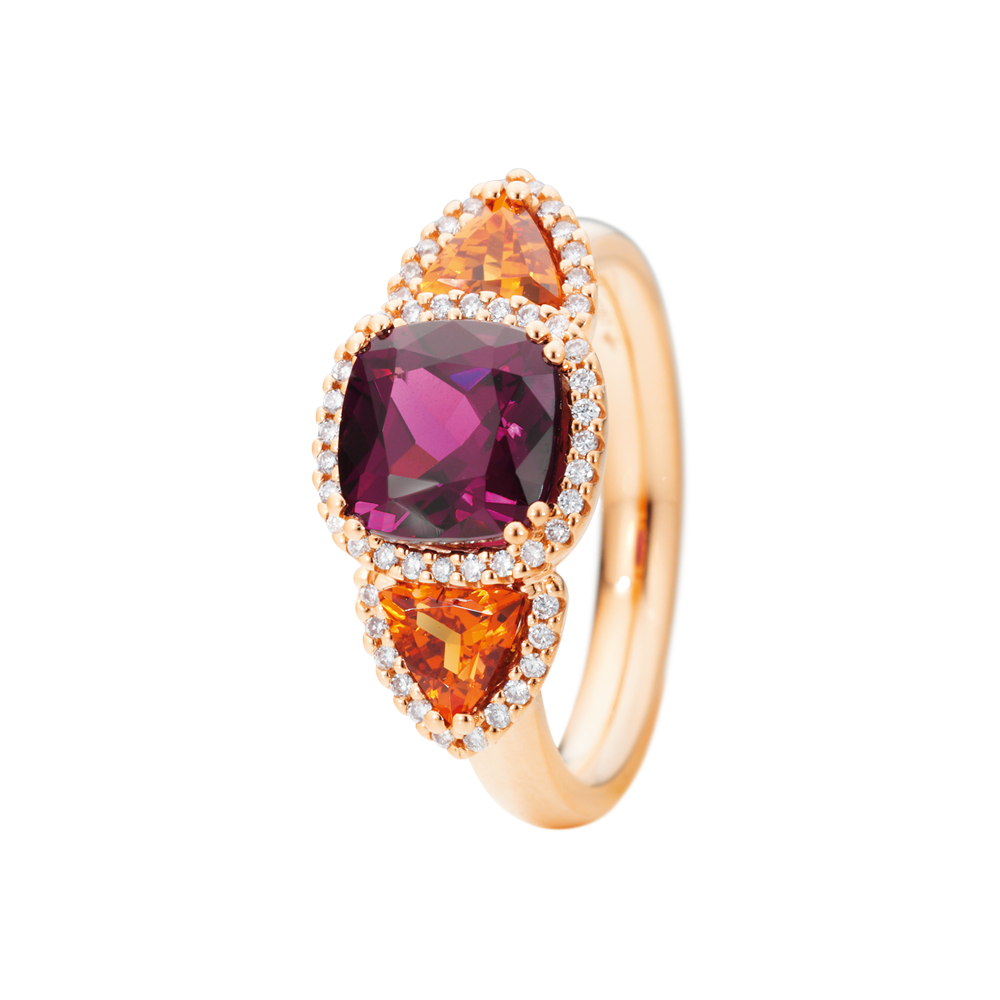 | Farbsteine | Granat Royal Purple Antik 8.0 x 8.0 mm, Granat Mandarin Trillion 5.0 x 5.0 mm |