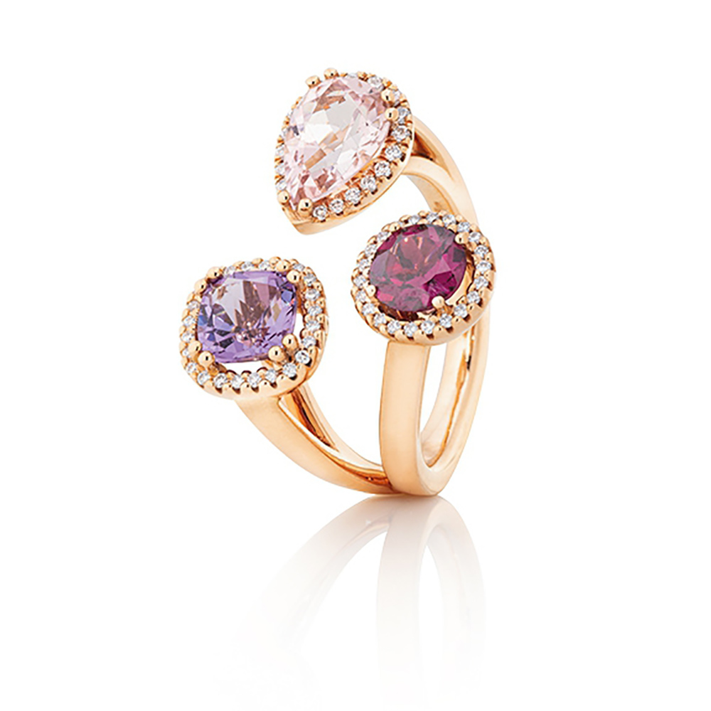 FarbsteineMorganit facettiert 9x6 mm ca. 1.10ct, Amethyst flieder antik 6x6mm ca. 0.90ct, Rhodolith facettiert Ø 6mm ca. 1.02ct