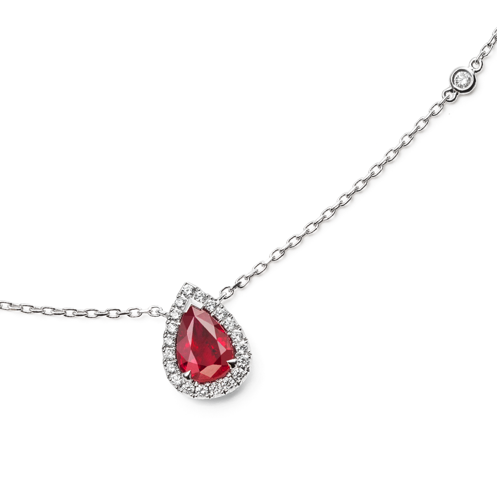 Collier in Weissgold 750 mit Rubin und Brillanten