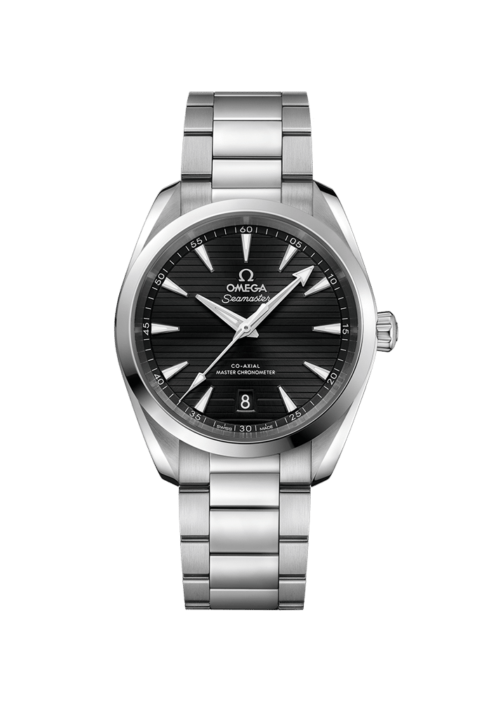 Die Seamaster Aqua Terra ist ein Tribut an OMEGAs großes maritimes Erbe. Das symmetrische Gehäuse dieses 38-mm-Modells besteht aus Edelstahl und ist auf der Rückseite mit einem Wellendekor versehen.