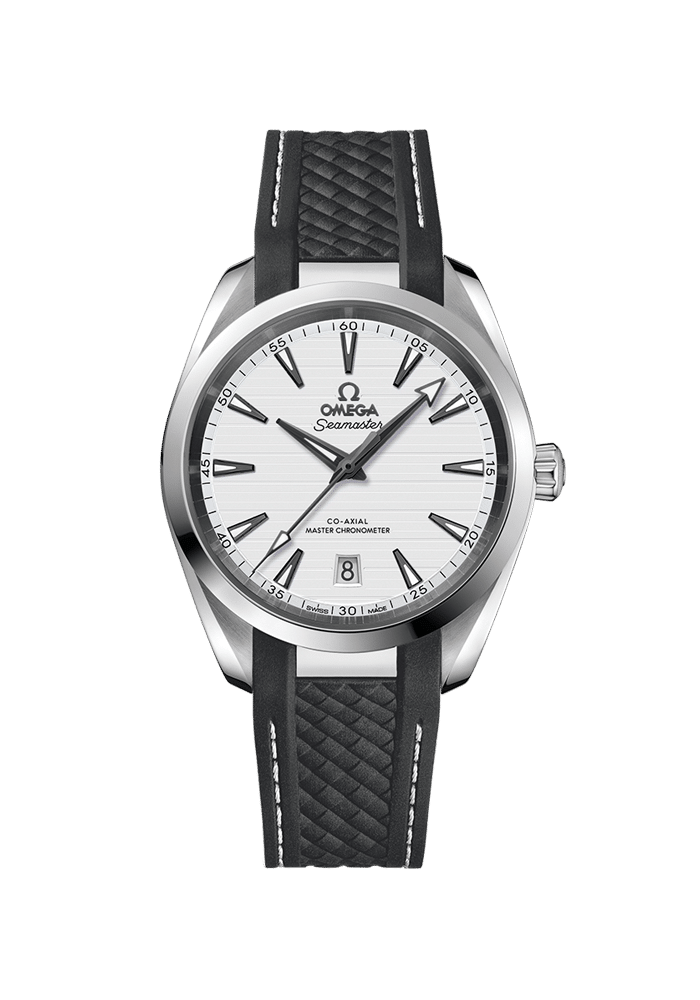 Die Seamaster Aqua Terra ist ein Tribut an OMEGAs großes maritimes Erbe. Das symmetrische Gehäuse dieses 38-mm-Modells besteht aus Edelstahl und ist auf der Rückseite mit einem Wellendekor versehen.