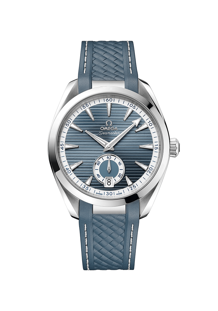| Zifferblatt | blaugrau, mit Sonnenschliff und horizontalem „Teak“-Muster |