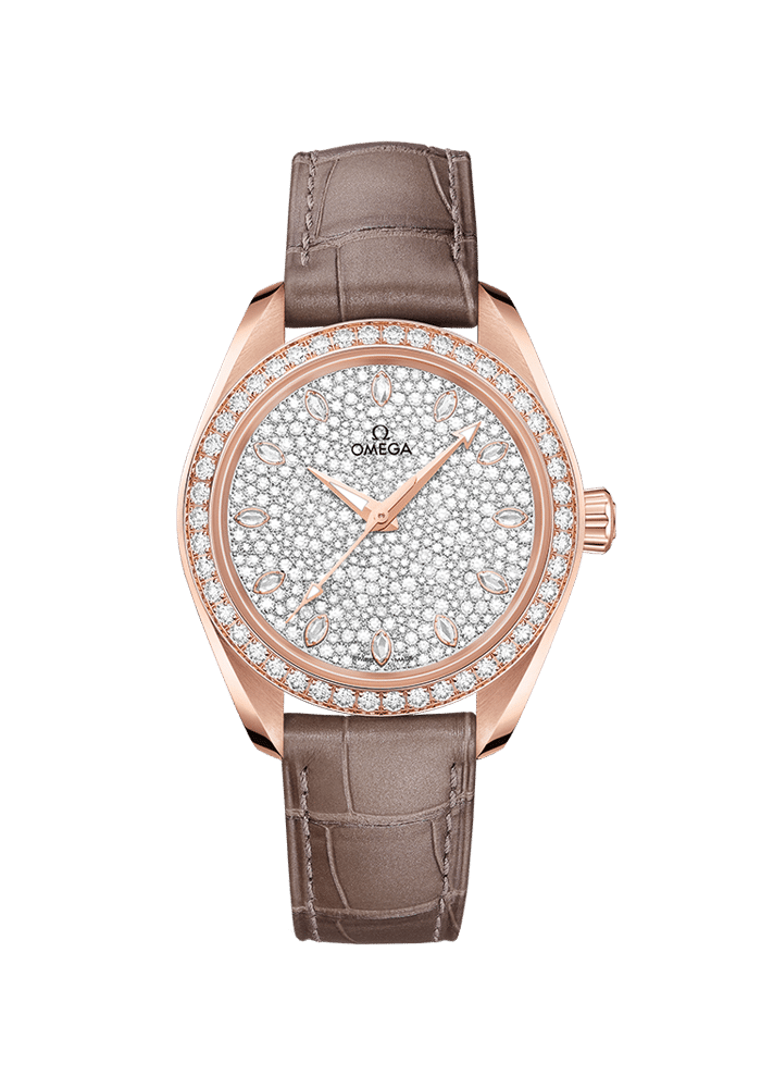 Diese außergewöhnliche Seamaster Aqua Terra, die aus verschiedenen edlen Materialien gefertigt wurde, ist eine Schmuckuhr von faszinierender Schönheit.