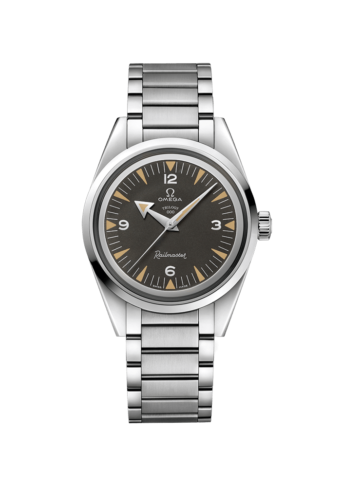 Die Railmaster, die in einer auf 557 Exemplare limitierten Auflage gefertigt wurde, ist Hommage an einen der drei 1957 herausgebrachten Uhrenklassiker anlässlich ihres 60-jährigen Jubiläums. Sie basiert auf der ursprünglichen, amagnetischen Uhr, die einst für Menschen entwickelt wurde, die in Reichweite elektrischer Felder arbeiteten. Zwar wird der unprätentiöse Stil des Modells von 1957 beibehalten, jedoch wird die Uhr nun von dem Master Chronometer 8806 angetrieben, das unempfindlich gegenüber Magnetfeldern von bis zu 15.000 Gauß ist. Allen drei Uhren des in einer Box präsentierten Sets gemein ist das gebürstete und polierte Edelstahlgehäuse mit der Inschrift TRILOGY und der Seriennummer der limitierten Auflage auf dem schwarzen „Tropical“-Zifferblatt. Das Edelstahlarmband wurde überarbeitet und ist nunmehr noch robuster. Auf der Schließe befindet sich ein OMEGA Logo im Retro-Stil.